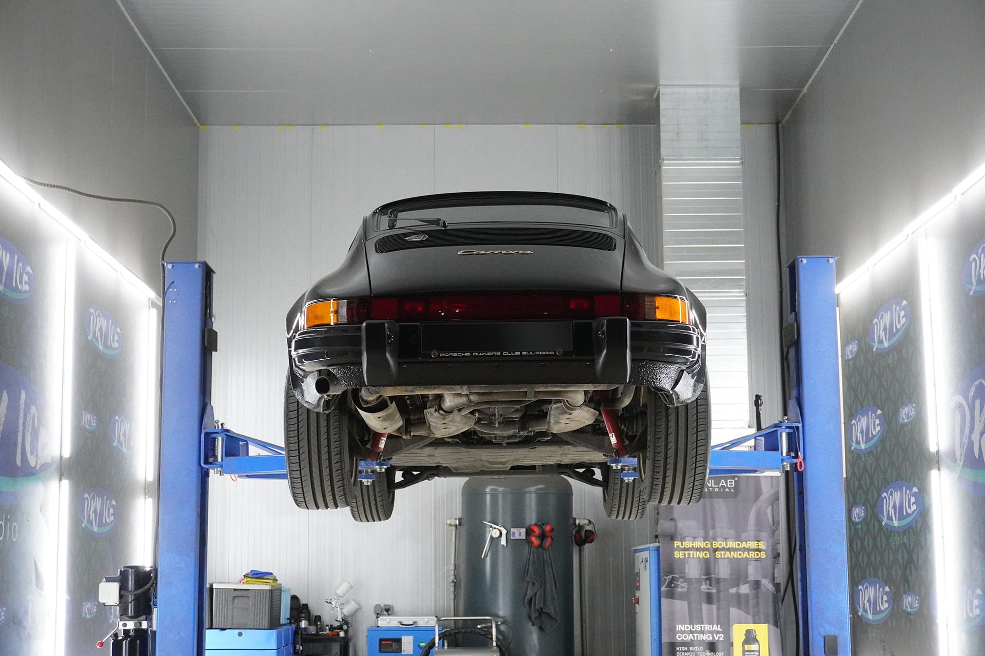 Този класически Porsche 911 Carrera от 1987 г. премина през детайлно почистване на шасито, ходовата част, двигателния отсег с технологията на сухия лед – безопасно, без агресивни химикали и без риск за деликатните елементи на автомобила.